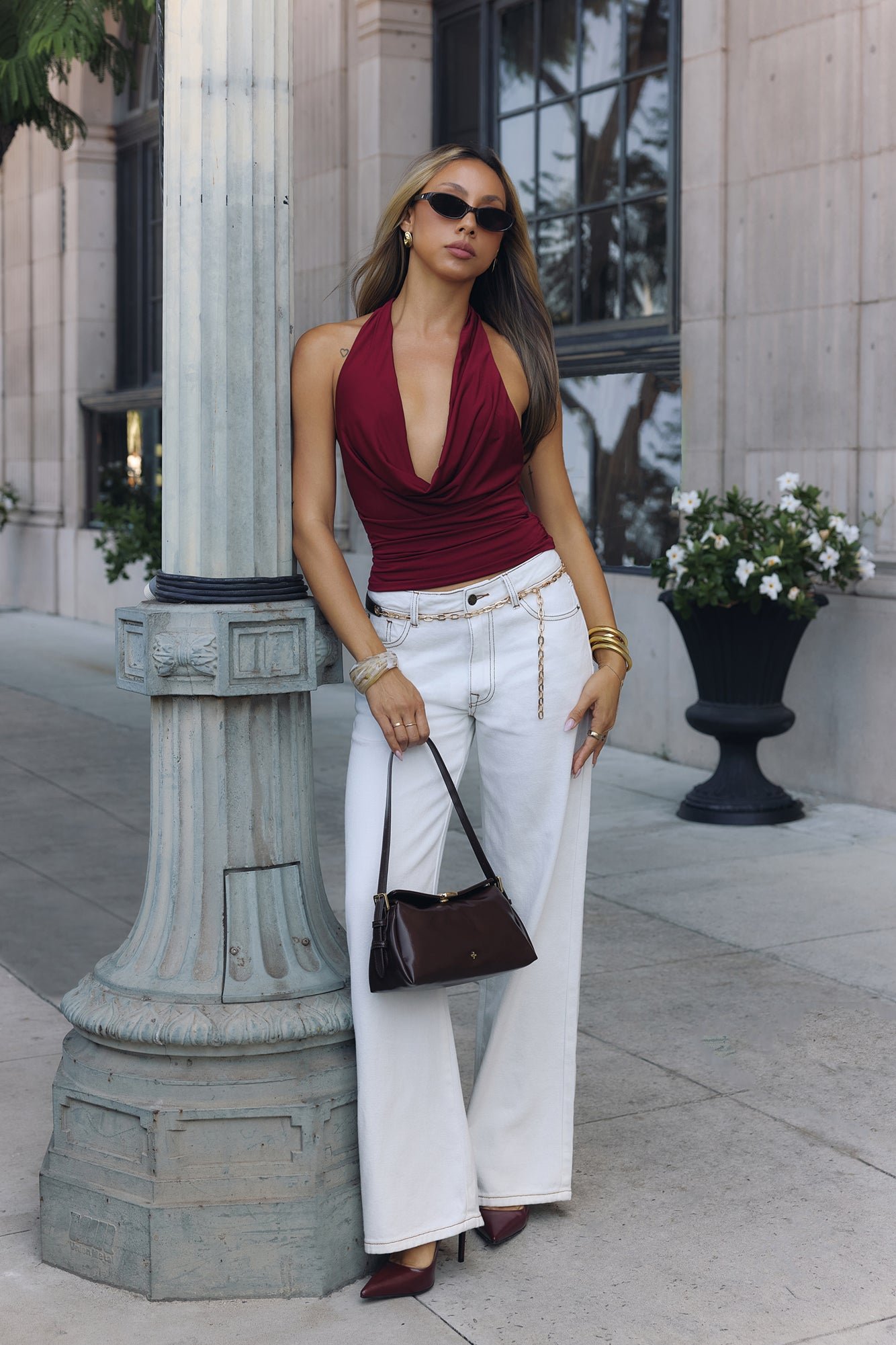 Be the first to review “BASE Contour In Her Element Halter Cowl Top Wine”