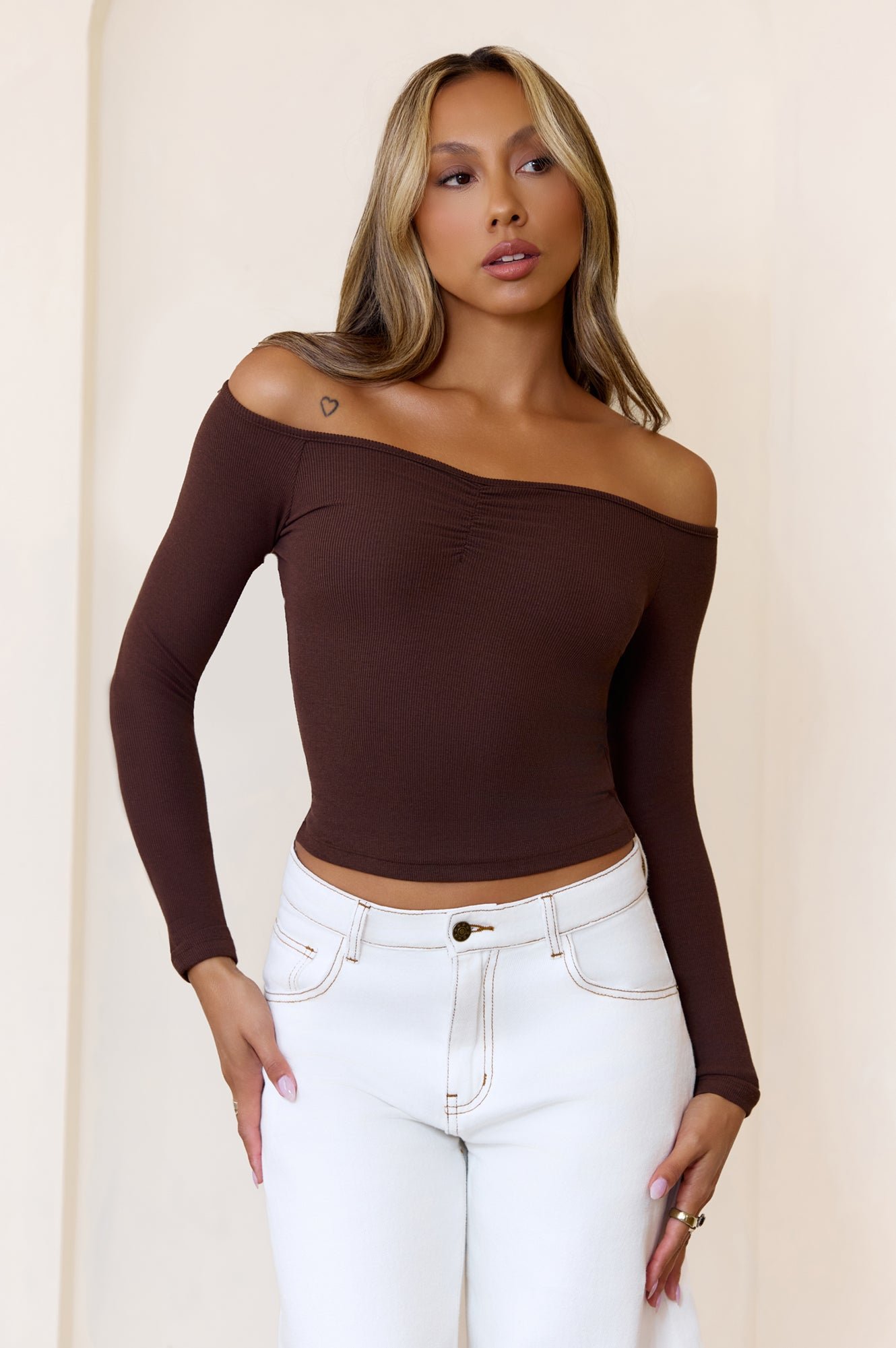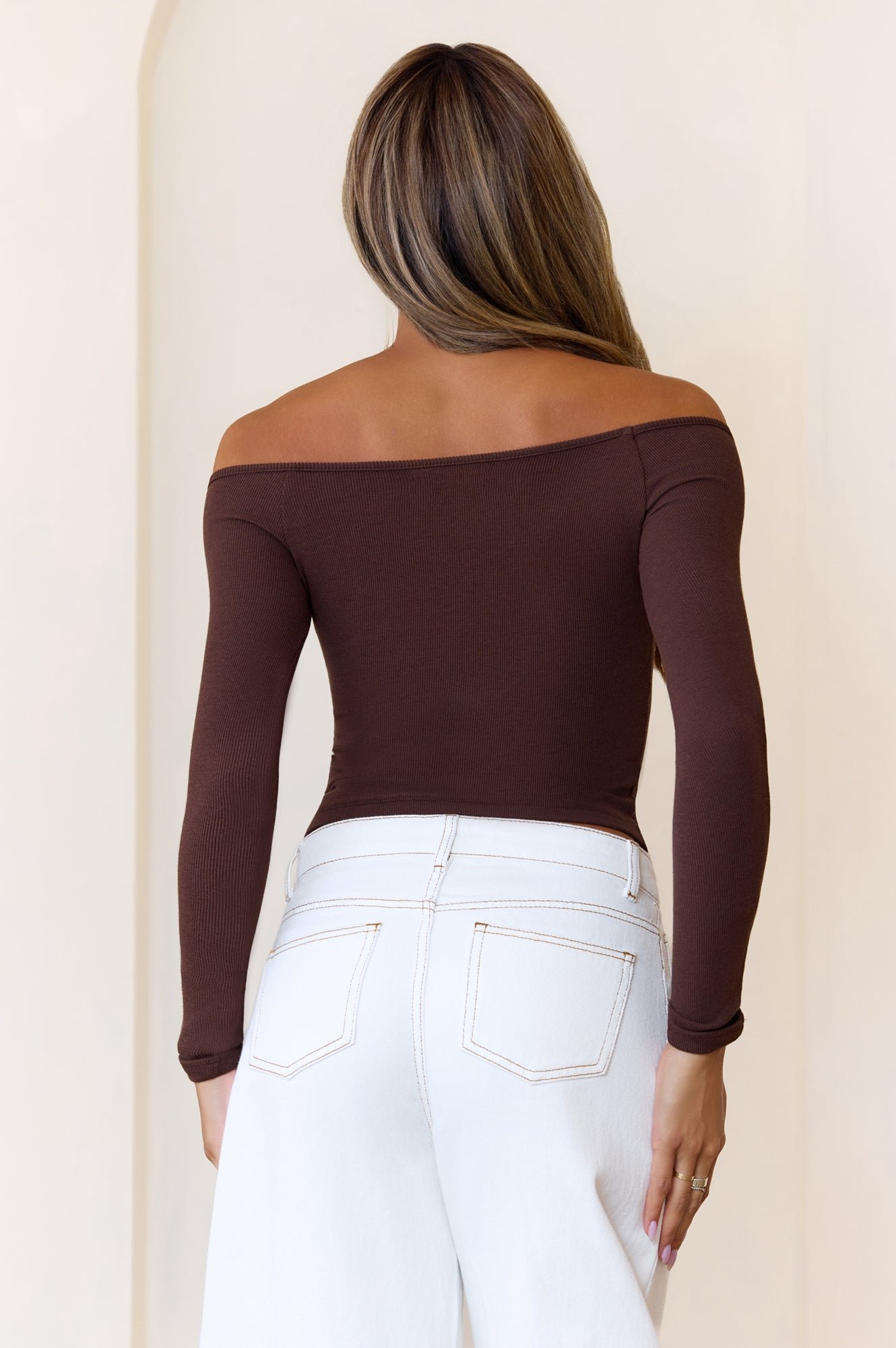 BASE Luxe Rib Pure Comfort Off Shoulder Long Sleeve Top Chocolate
