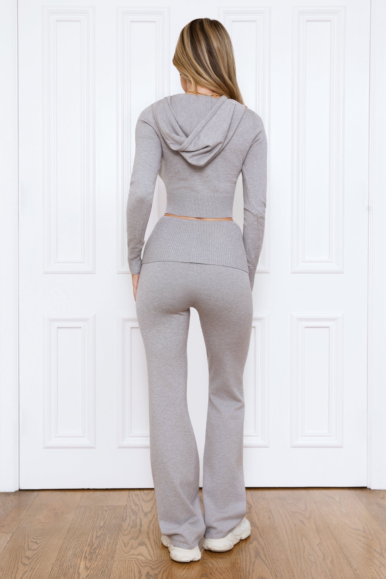 BASE Off Duty Model Cropped Knit Zip Hoodie Grey