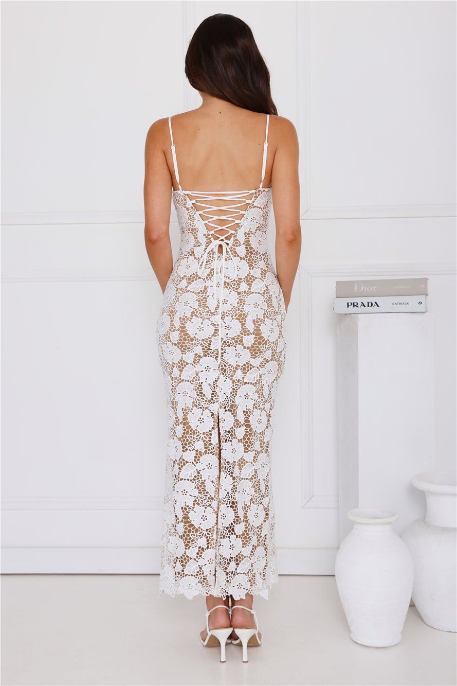 Dress to impress in the Bellerose Lace Maxi Dress. Featuring a gorgeous embroidered lace design, supportive underwire and a crisscross back. Style with heels and curls for all the likes!