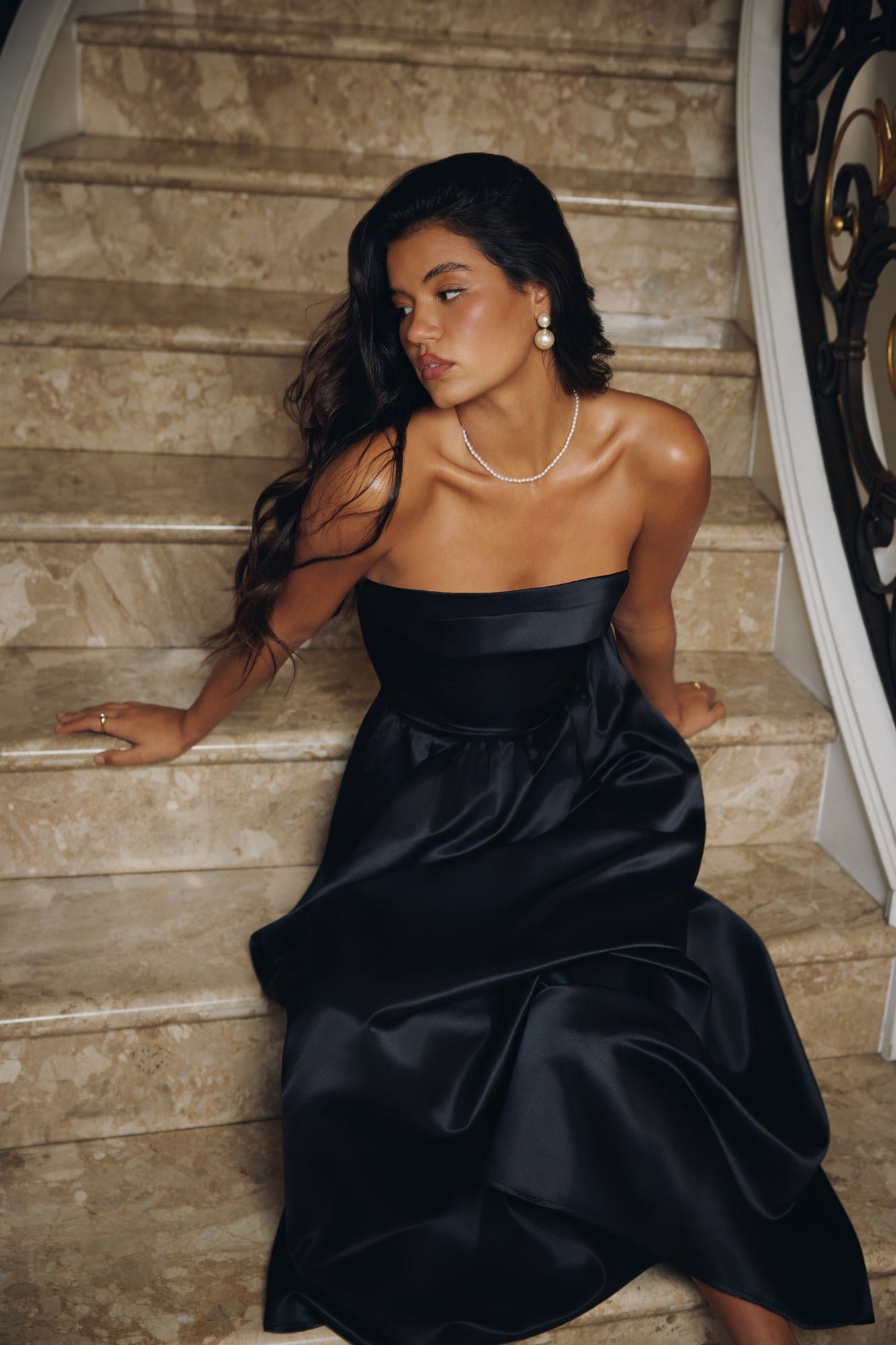 Exclusively designed for the ultimate confidence. The Elegance In Motion Strapless Maxi Dress features a fitted bodice, a folded neckline and a flared skirt – we’re in love with this statement design! Style with heels and curls for a fancy event.