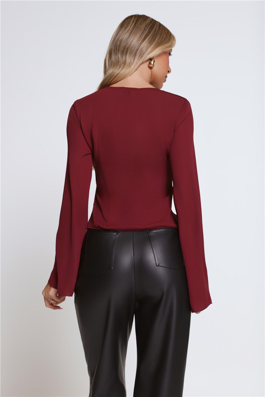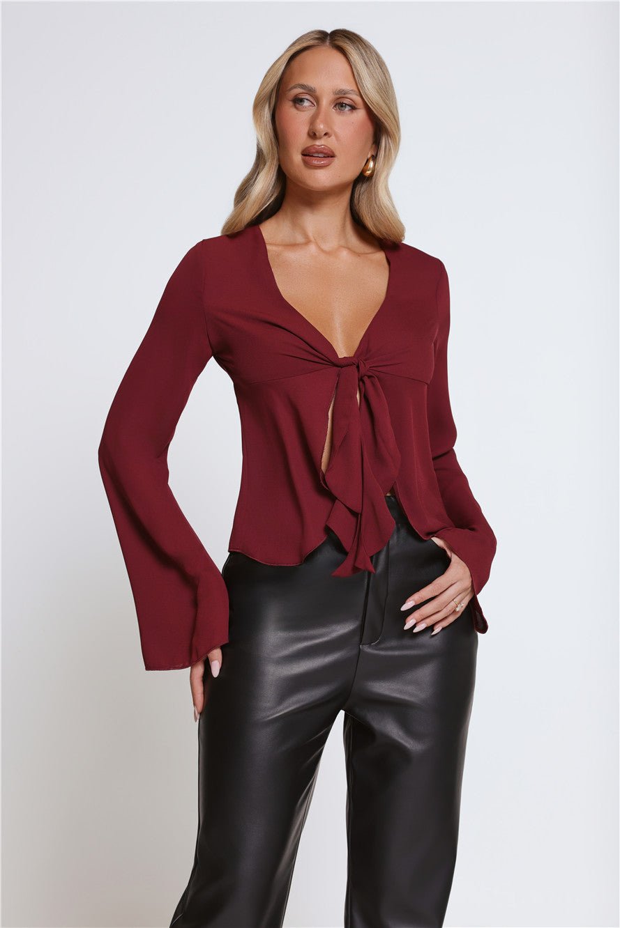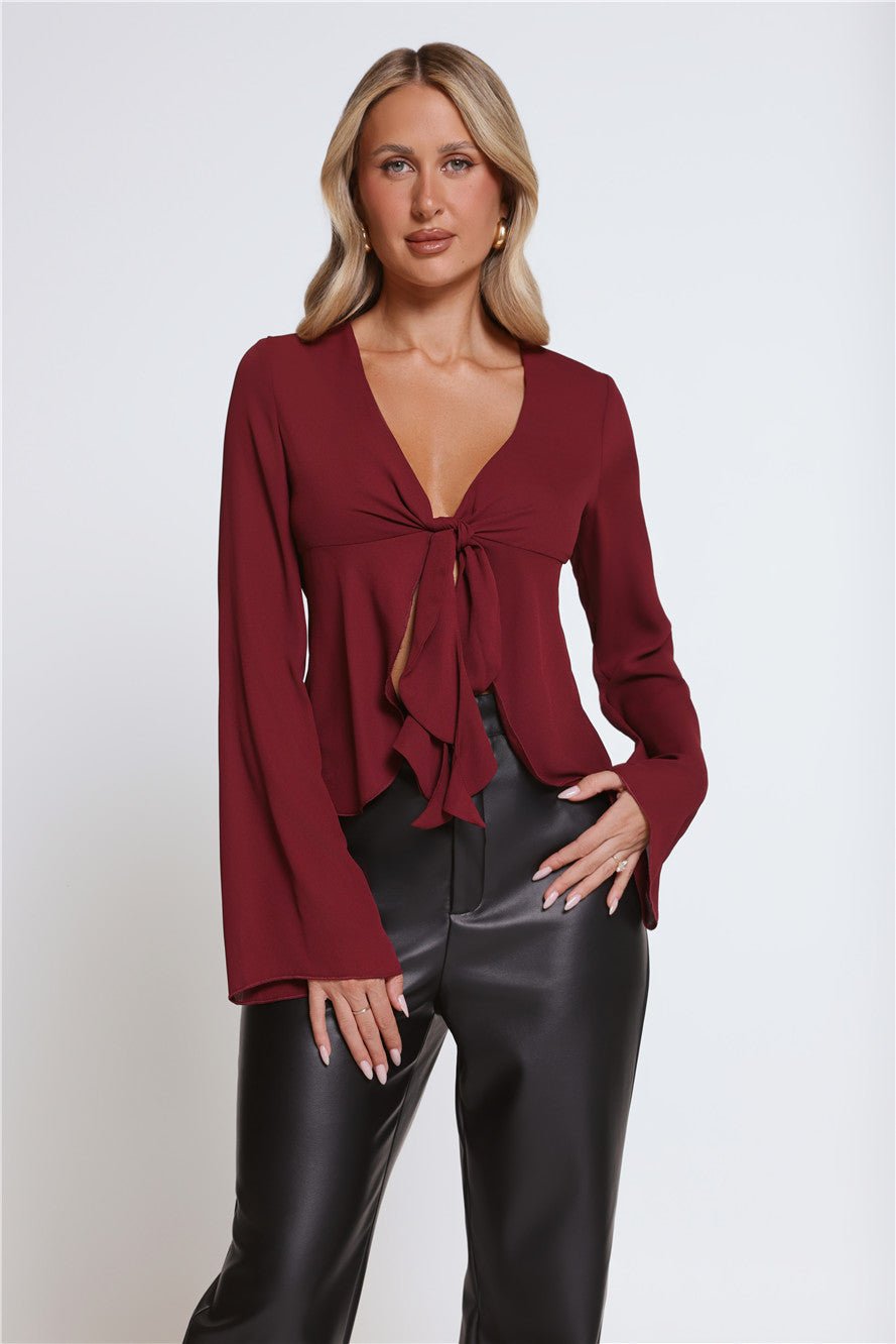 Romantic yet refined, the Hot Topic Long Sleeve Top features a soft, flowy silhouette with delicate frill detailing. Designed with a tie neckline for a feminine finish, this piece effortlessly balances elegance and ease—perfect for day-to-night styling.