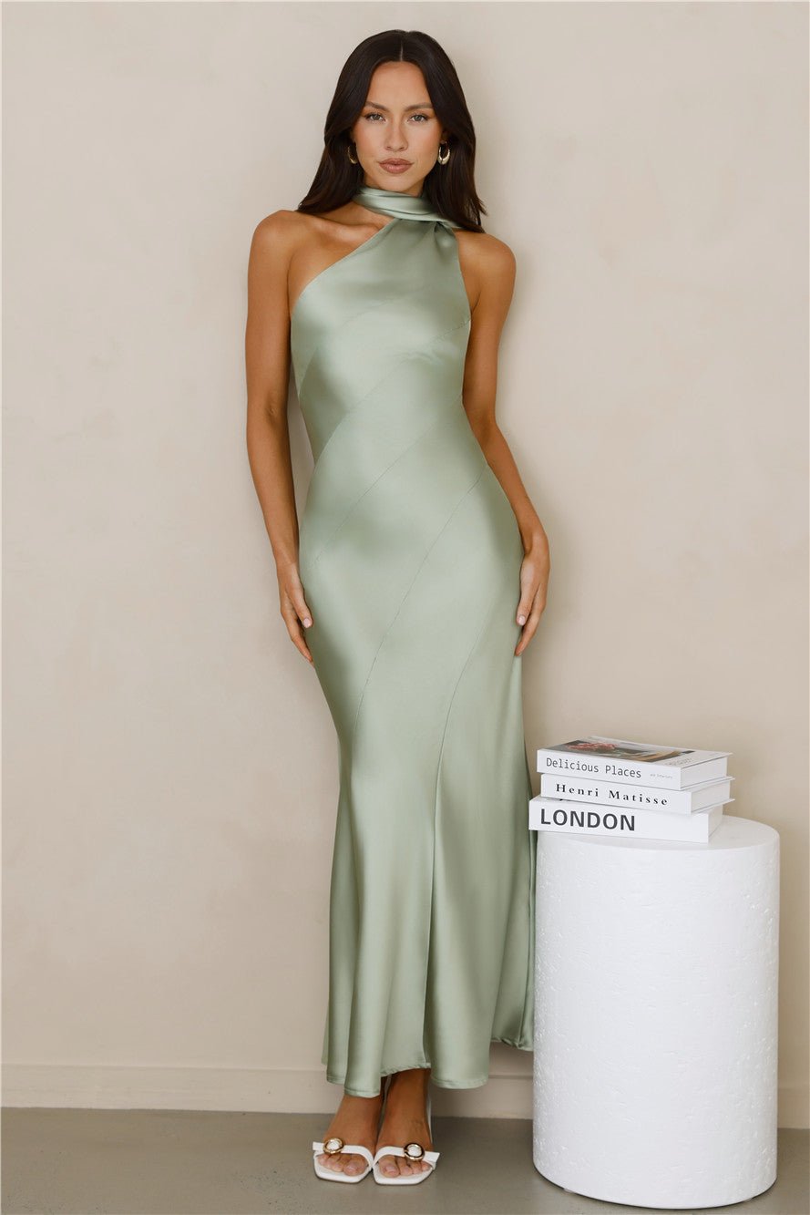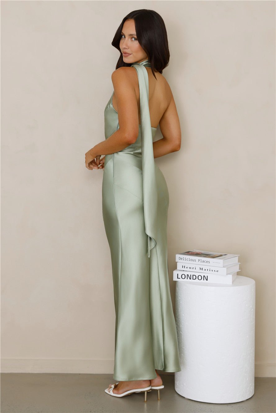 Kissed By Moonlight Satin Maxi Dress Sage