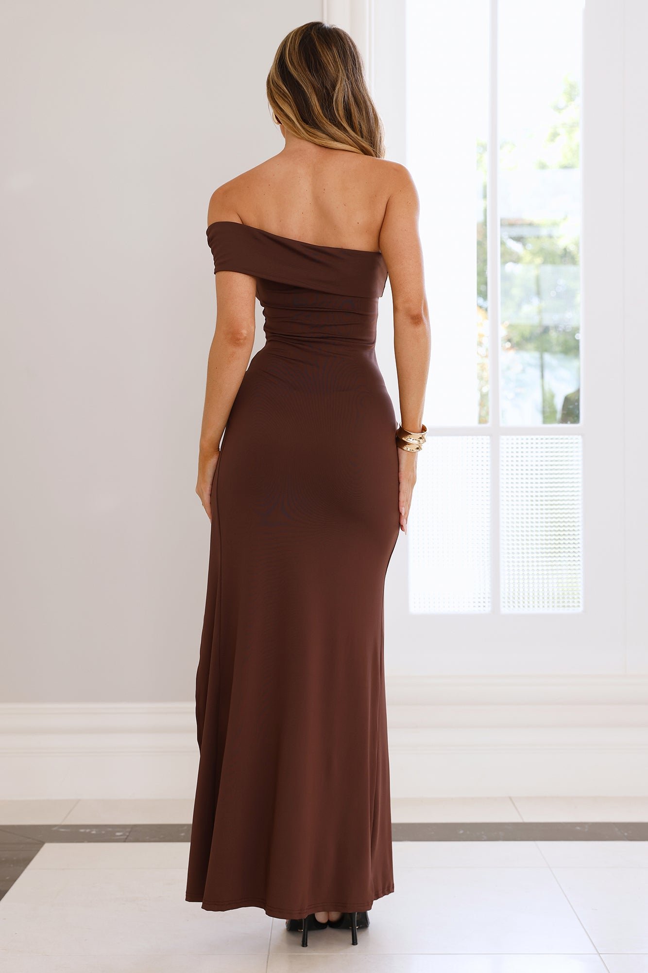 Lavish Luxe Off Shoulder Maxi Dress Brown