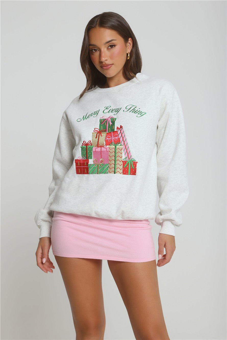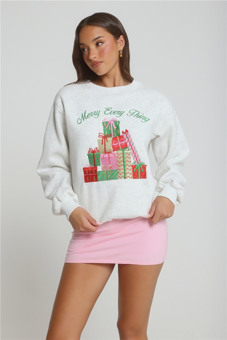 Get festive in the Merry Every Thing Sweater. Made from soft fleece with an oversized fit, long sleeves, and a classic crew neck, this slip-on sweater features a playful embroidered design that’s perfect for holiday cheer. Cozy, cute, and effortlessly stylish. Style it with high-waisted jeans and sneakers for festive vibes.