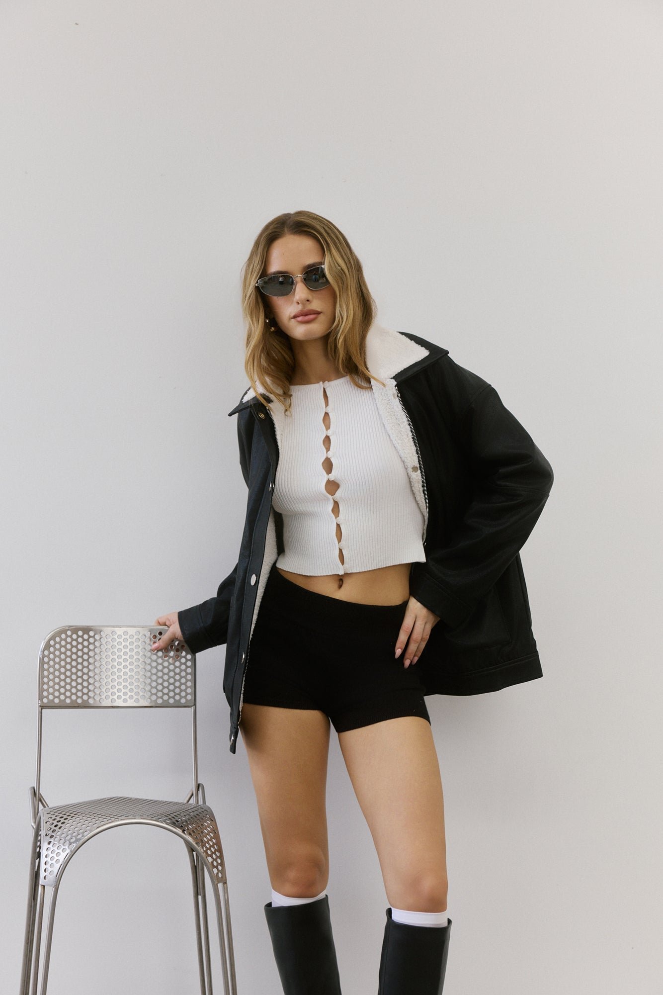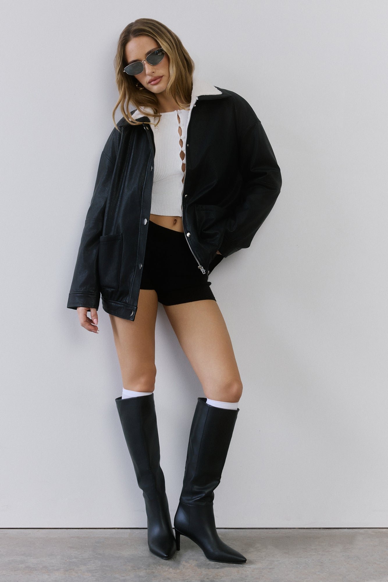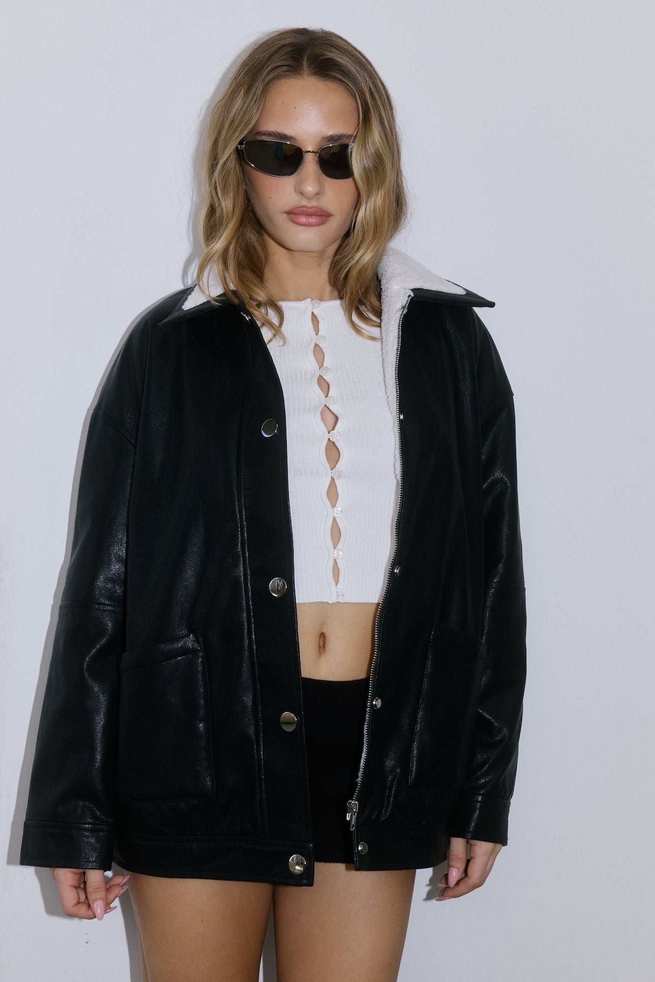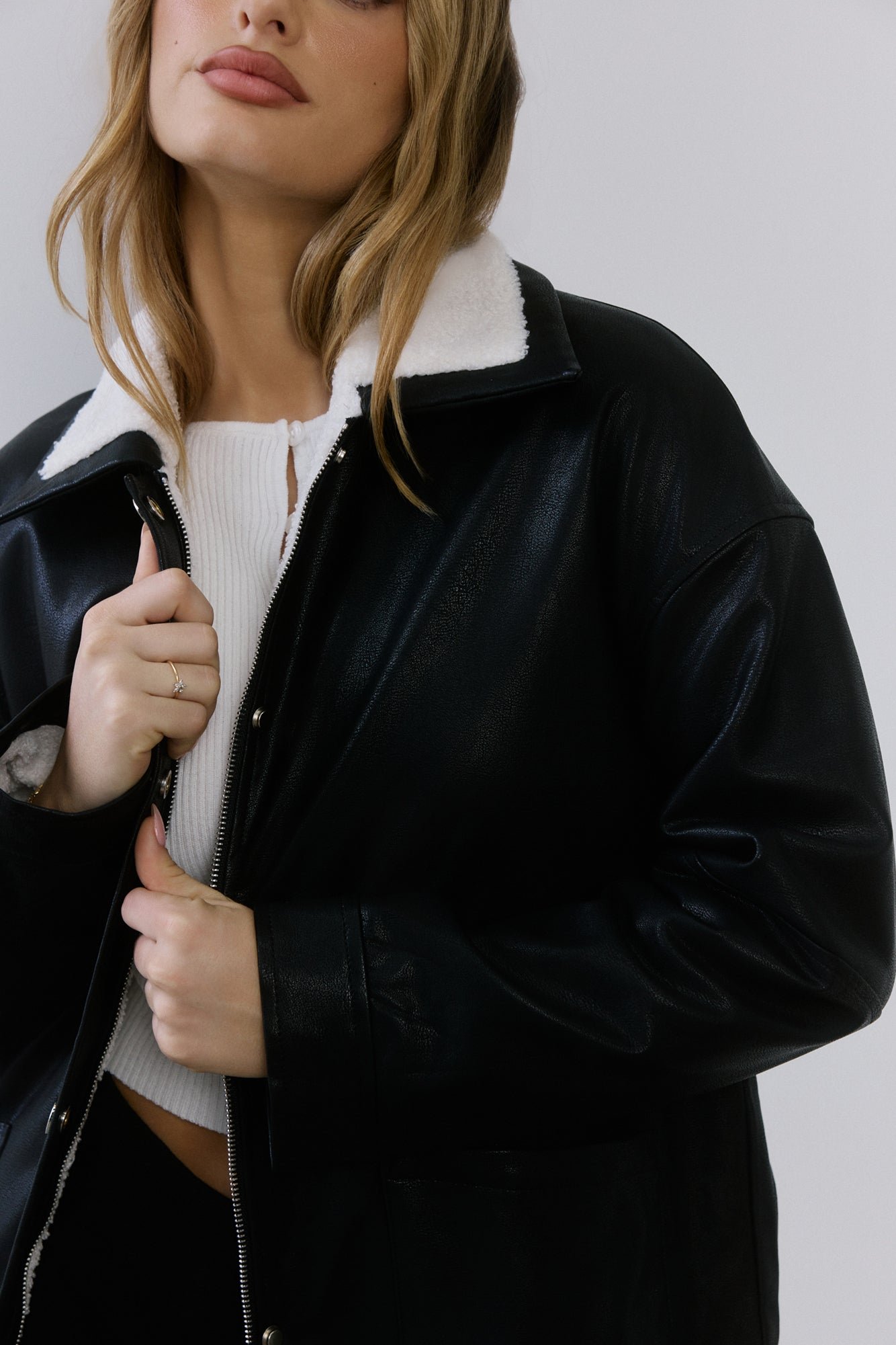 - Faux leather jacket.
