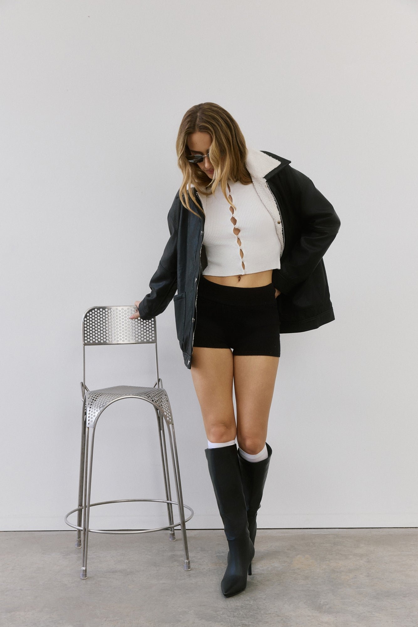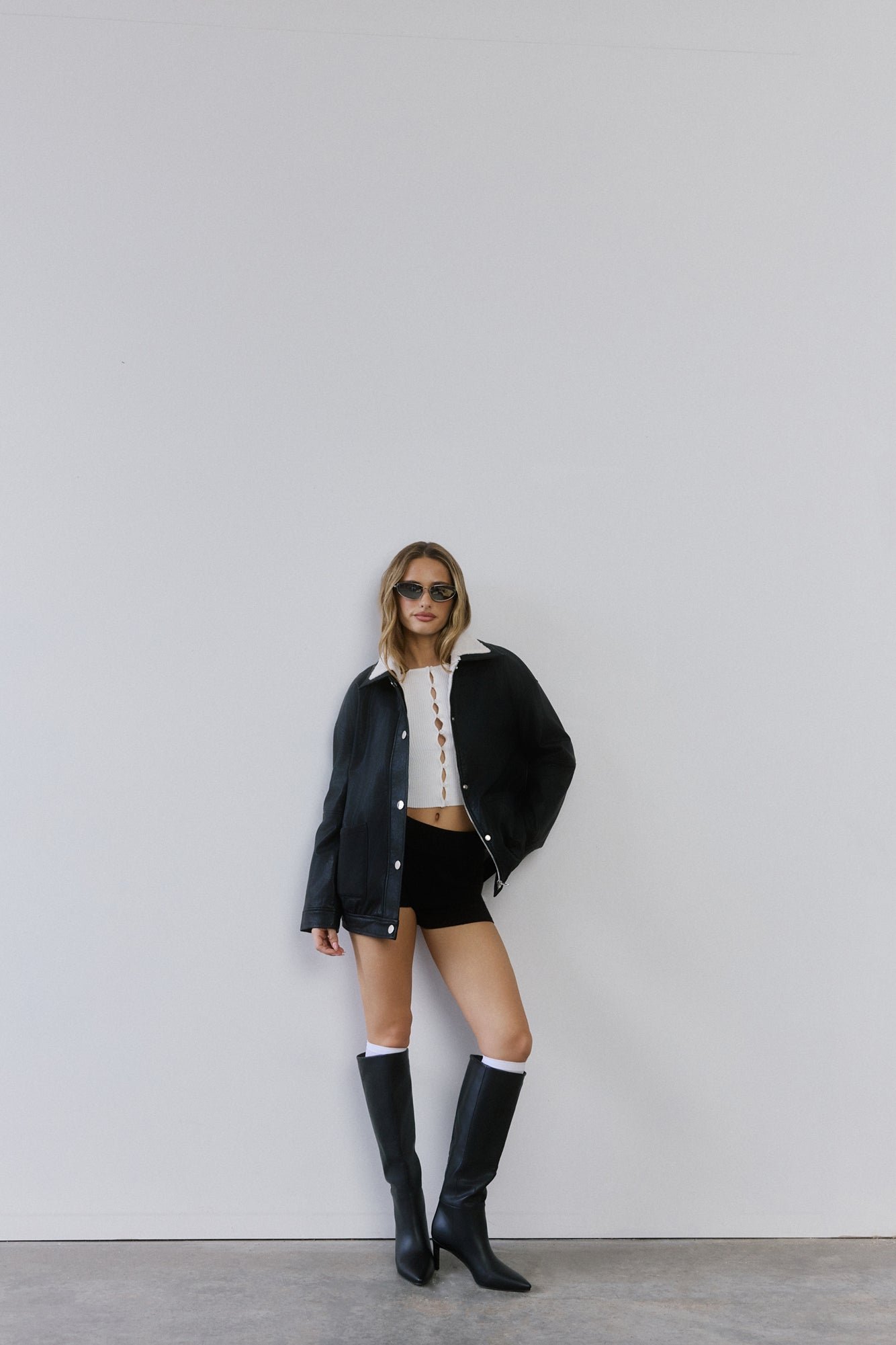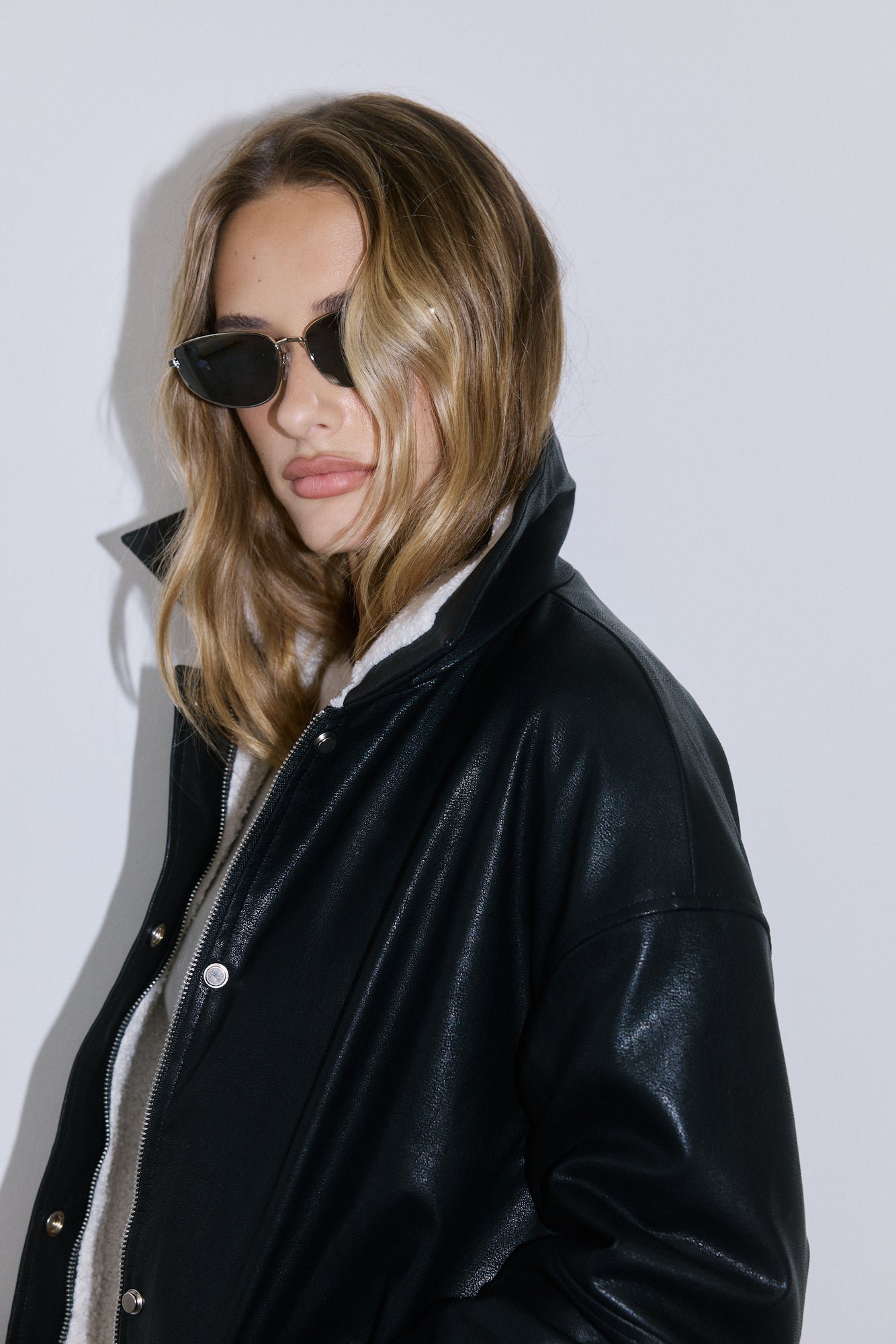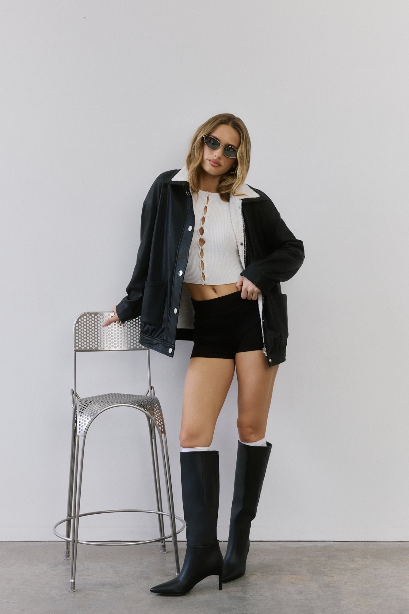 - Faux leather jacket.