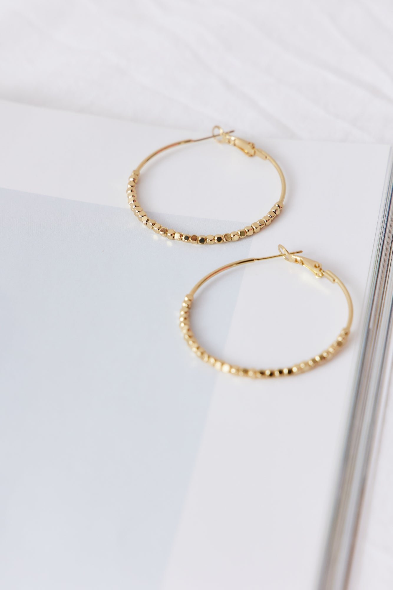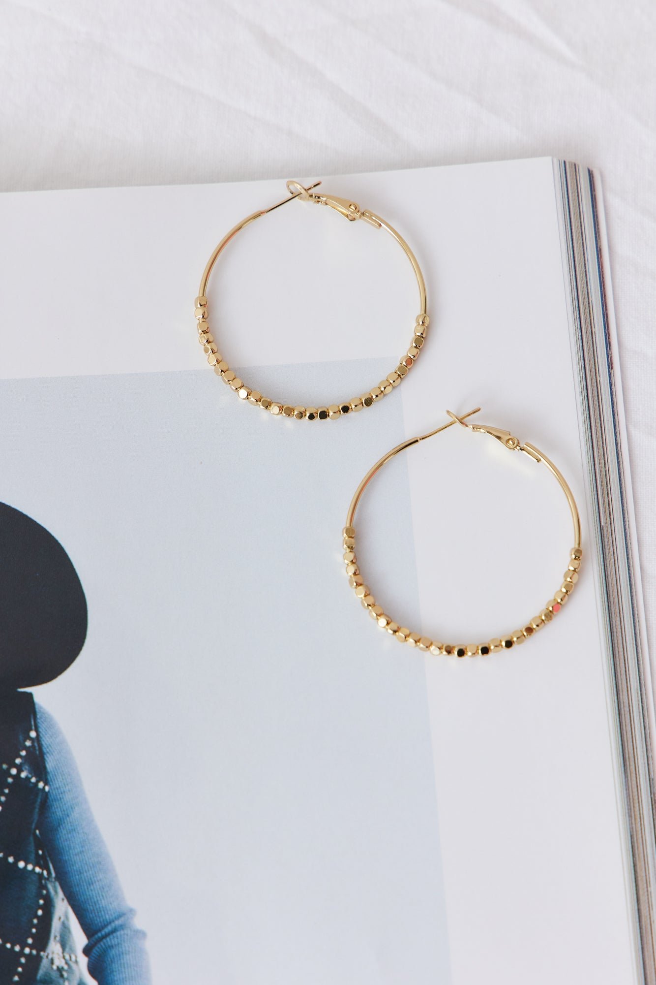 - Gold hoop earrings.