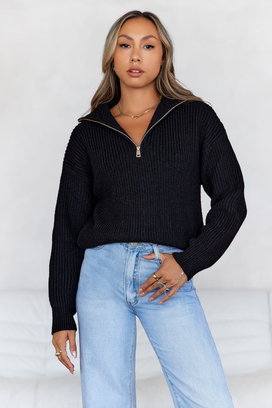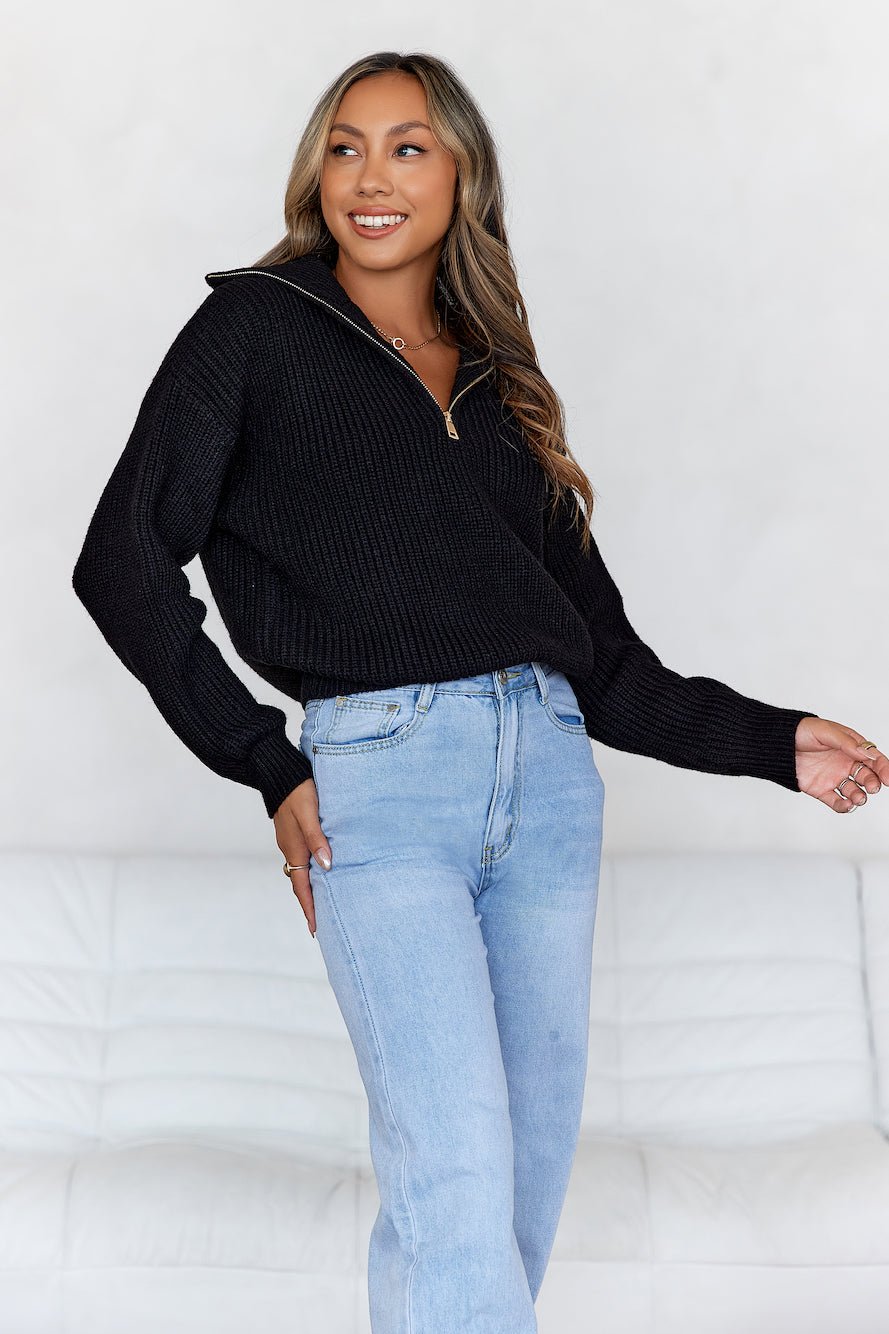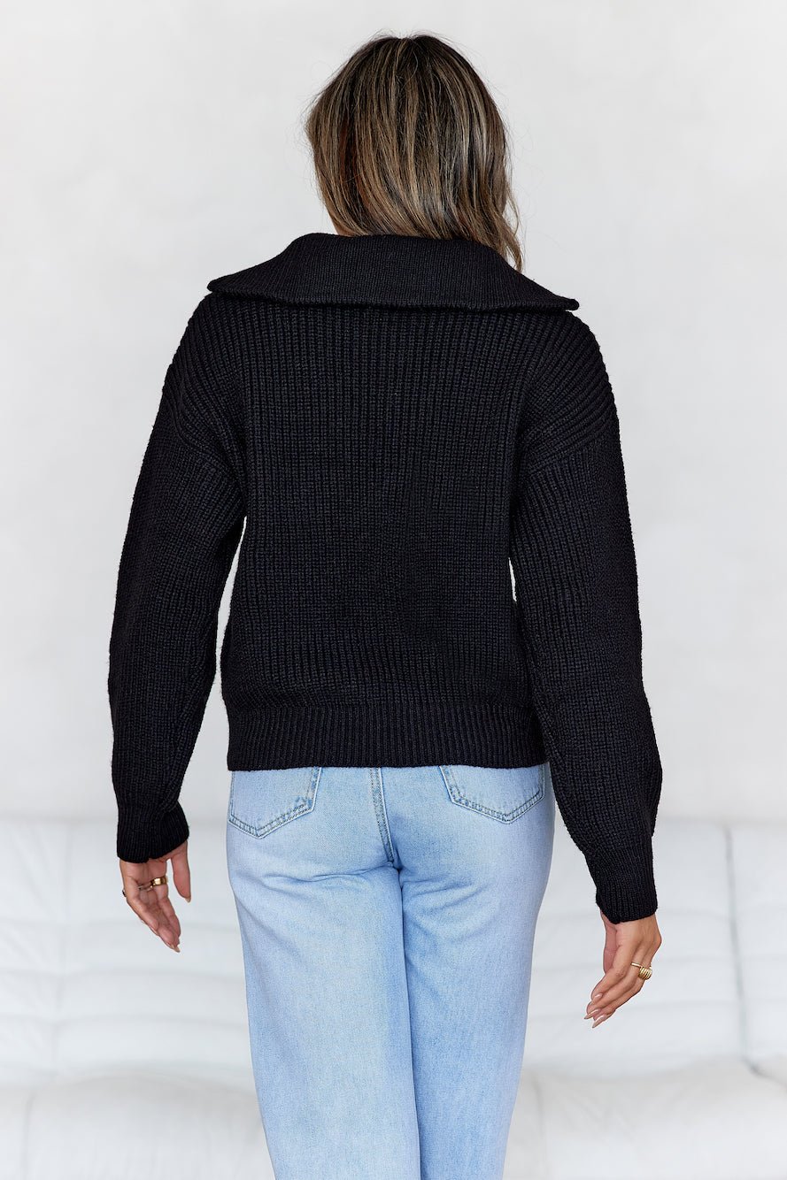 Snowfall Knitted Half Zip Sweater Black