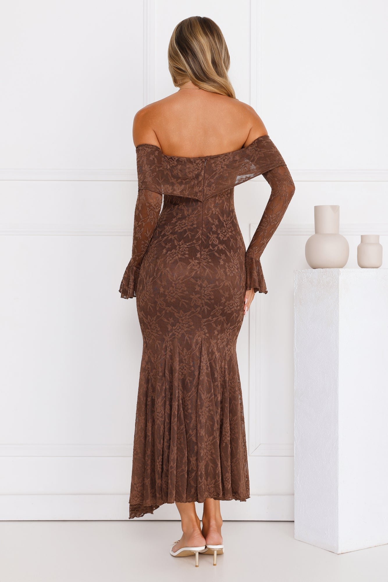 The Style Supreme Off Shoulder Mesh Maxi Dress features an elegant off-shoulder design, long sleeves, and a flattering flowy hem, making it ideal for any evening event. Add statement earrings and strappy heels to complete your stylish ensemble!Â