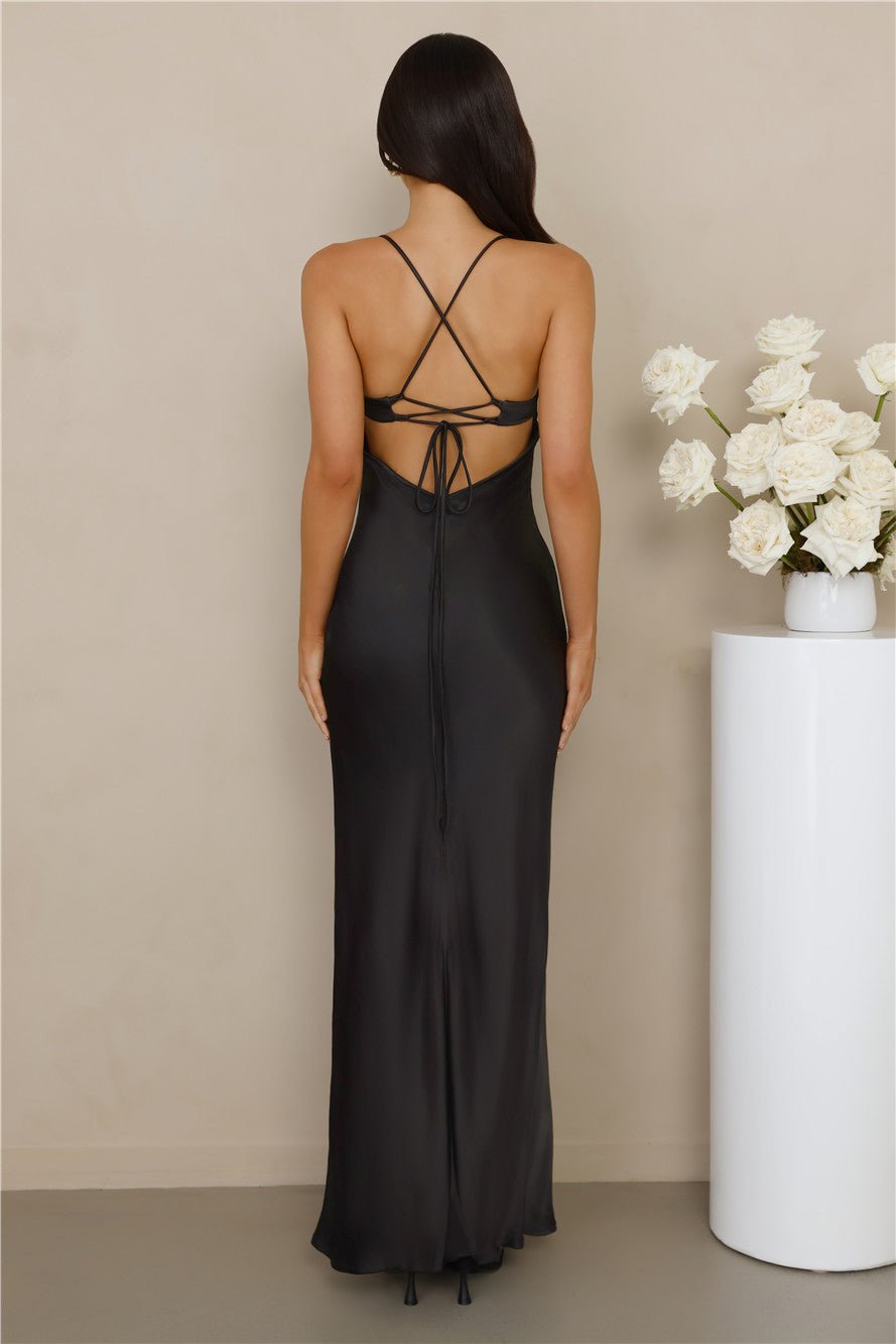For lovers of contemporary style! Featuring a chic scoop neckline, a V-back design and a crisscross tie-up back detail that gives a modern and playful feel, ensuring a stunning silhouette from every angle. Perfect for adding a touch of sophistication to any bridal party, this dress promises to dazzle and delight with its elegant style.