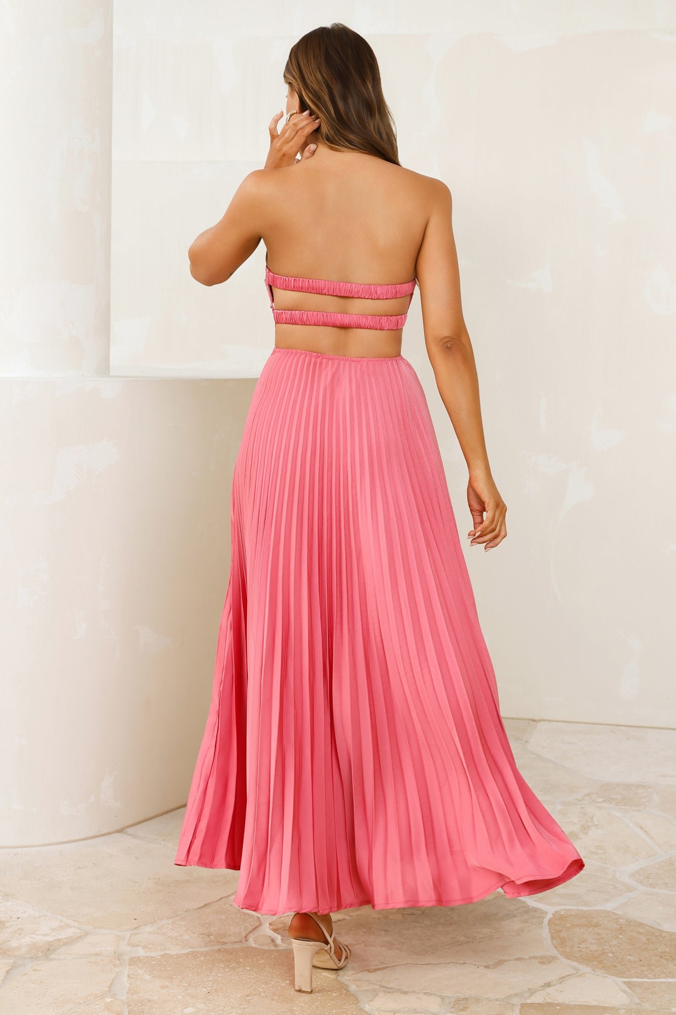 Vibes Are Priceless Strapless Satin Pleated Maxi Dress Rose